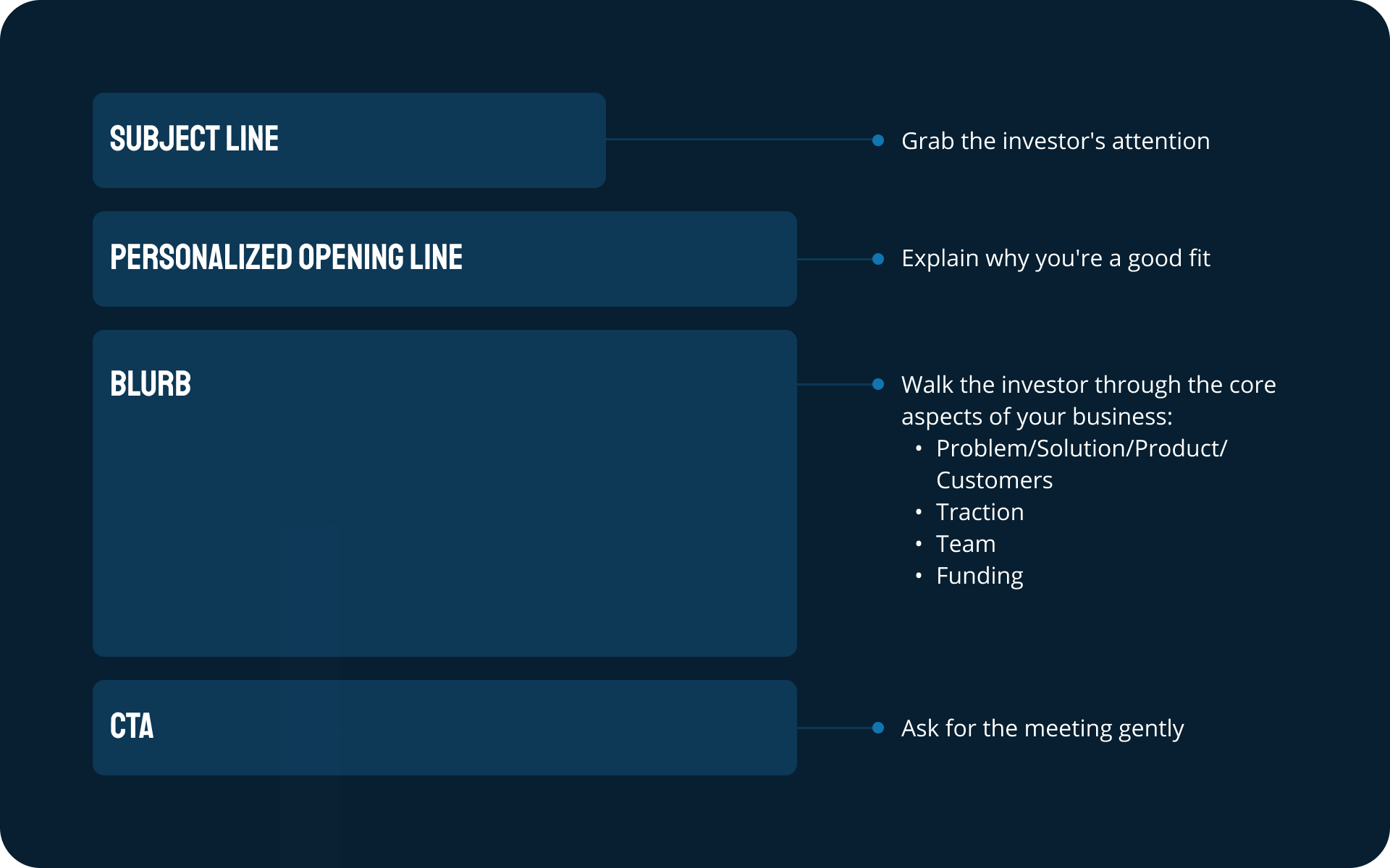 The subject line is what determines if investors even open your email or not. It should be short, simple, and intriguing.