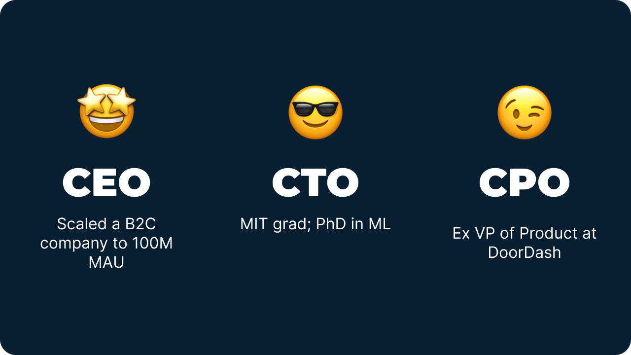 - Team — make investors believe your team is uniquely capable of building a high-growth startup.