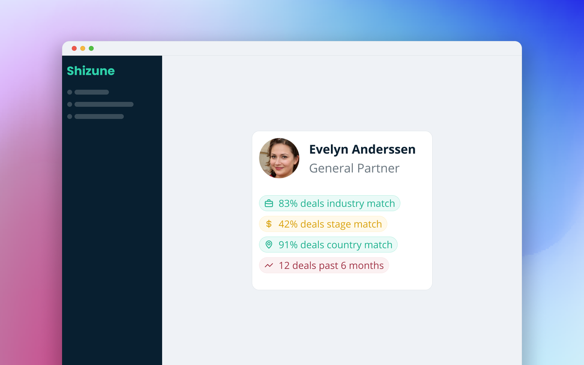 Find the best investors in your funnel at a glance. Shizune can now calculate investor relevancy scores: by industry, stage, activeness, and geography.